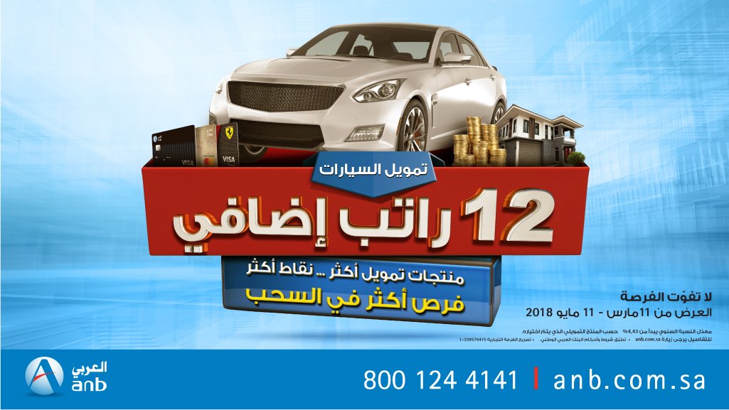 البنك العربي الوطني On Twitter انطلق بسيارتك المفضلة مع الإيجار التمويلي من العربي تقد م بطلبك الآن واحصل على فرصة ربح 12 راتب ا إضافي ا Https T Co Hrkws6mixo Https T Co Eiwexoc9we