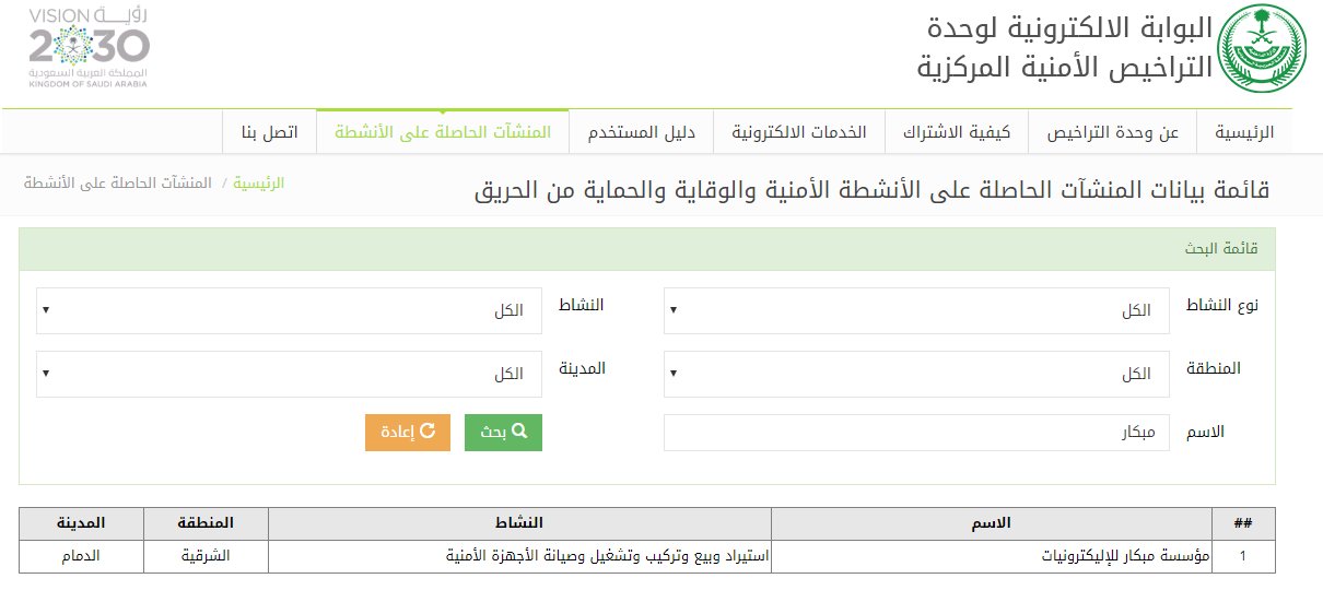 البوابة الالكترونية لوحدة التراخيص الامنية