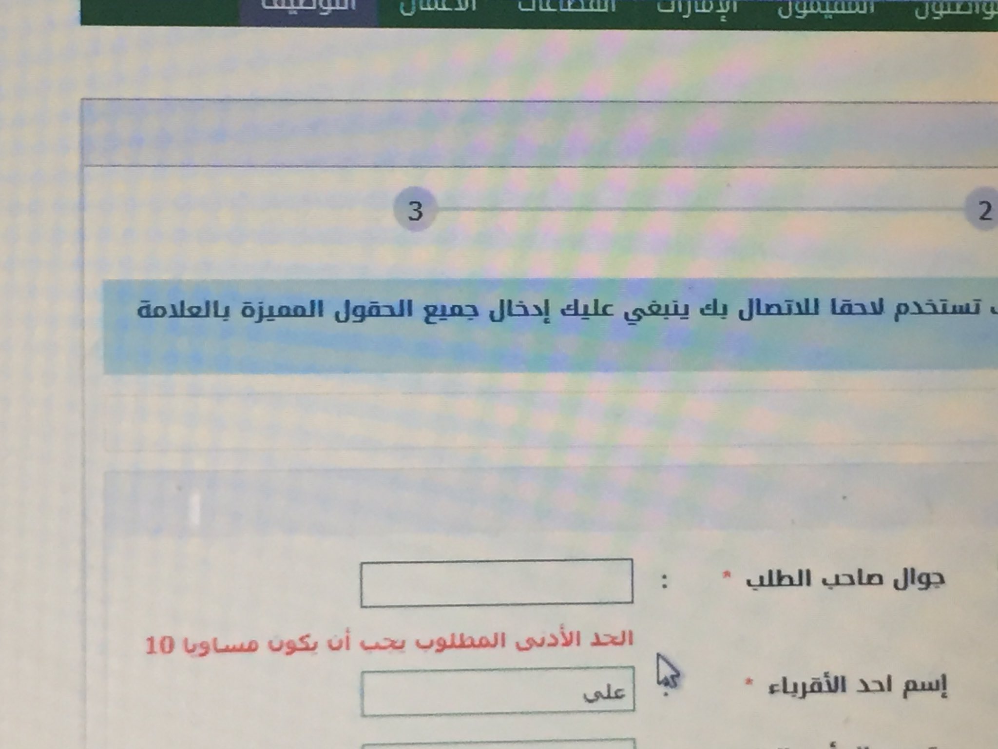 الحد الأدنى المطلوب يجب أن يكون مساويا 10 وزارة الداخلية