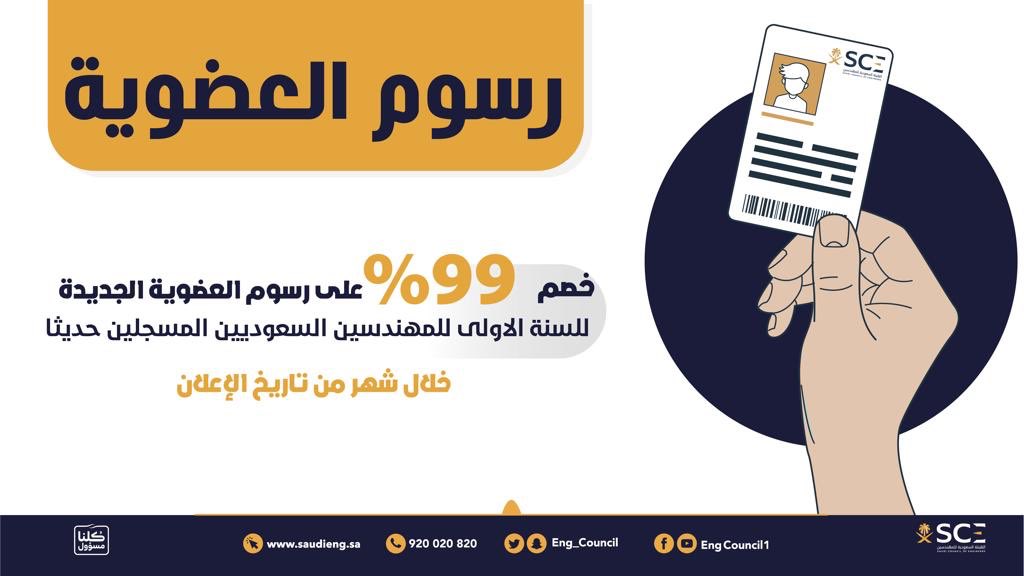 الهيئة السعودية للمهندسين Twitterissa خصم 99 على رسوم عضوية هيئة المهندسين الجديدة للسنة الأولى للمهندسين السعوديين المسجلين حديثا خلال شهر من تاريخ الإعلان Https T Co 3zzesstwc1 Https T Co 0zquik4sdk