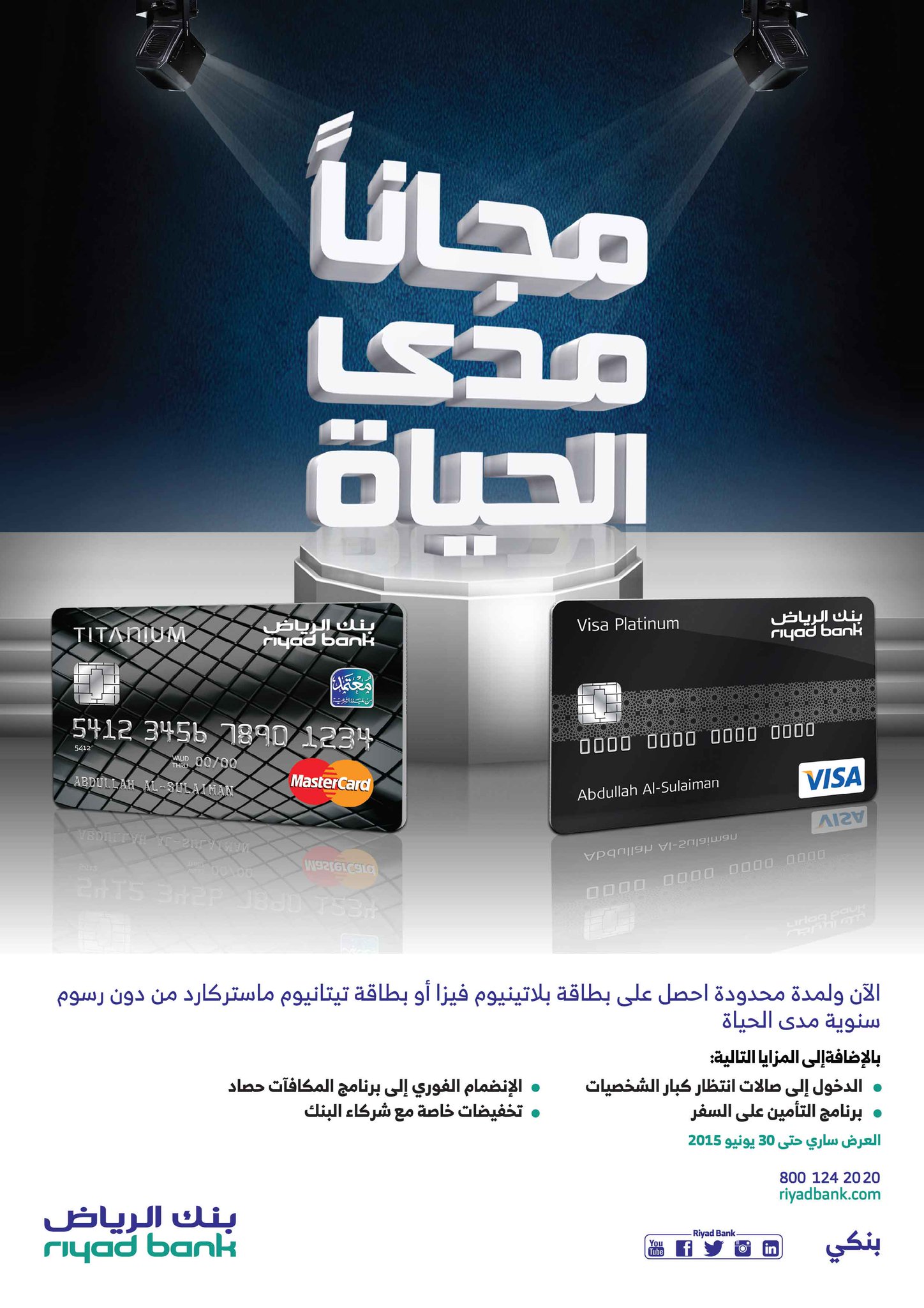 بنك الرياض On Twitter فيزا بلاتينيوم أو ماستركارد تيتانيوم من دون رسوم سنوية مدى الحياة تقدم بطلبك الآن Http T Co V93gg7uezk Http T Co G16vy6qpzx