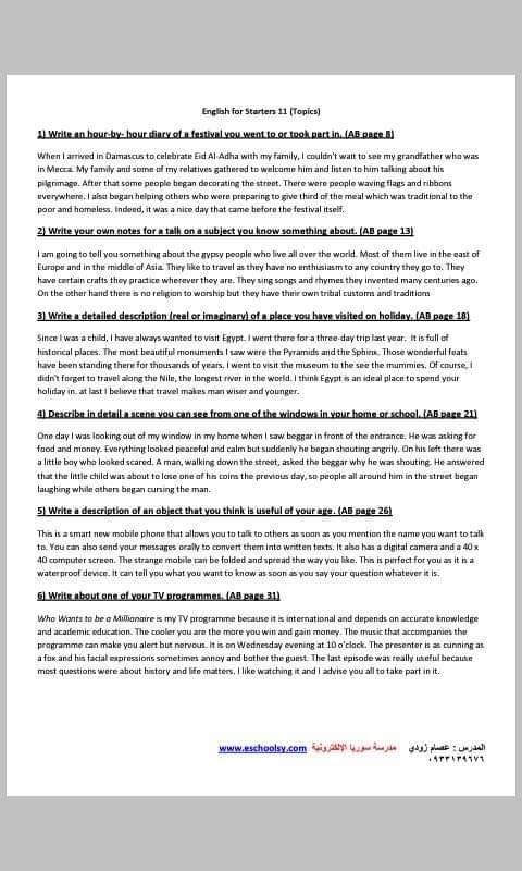 اللغة الإنجليزية مواضيع الكتابة للصف الثامن ملفاتي